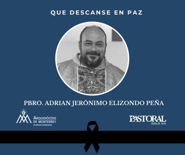 Por medio de la presente, les comunico que el día de ayer, partió a la casa del Padre Celestial el Pbro. Adrián Jerónimo Elizondo Peña, a la edad de 47 años, apreciado miembro de nuestro presbiterio.