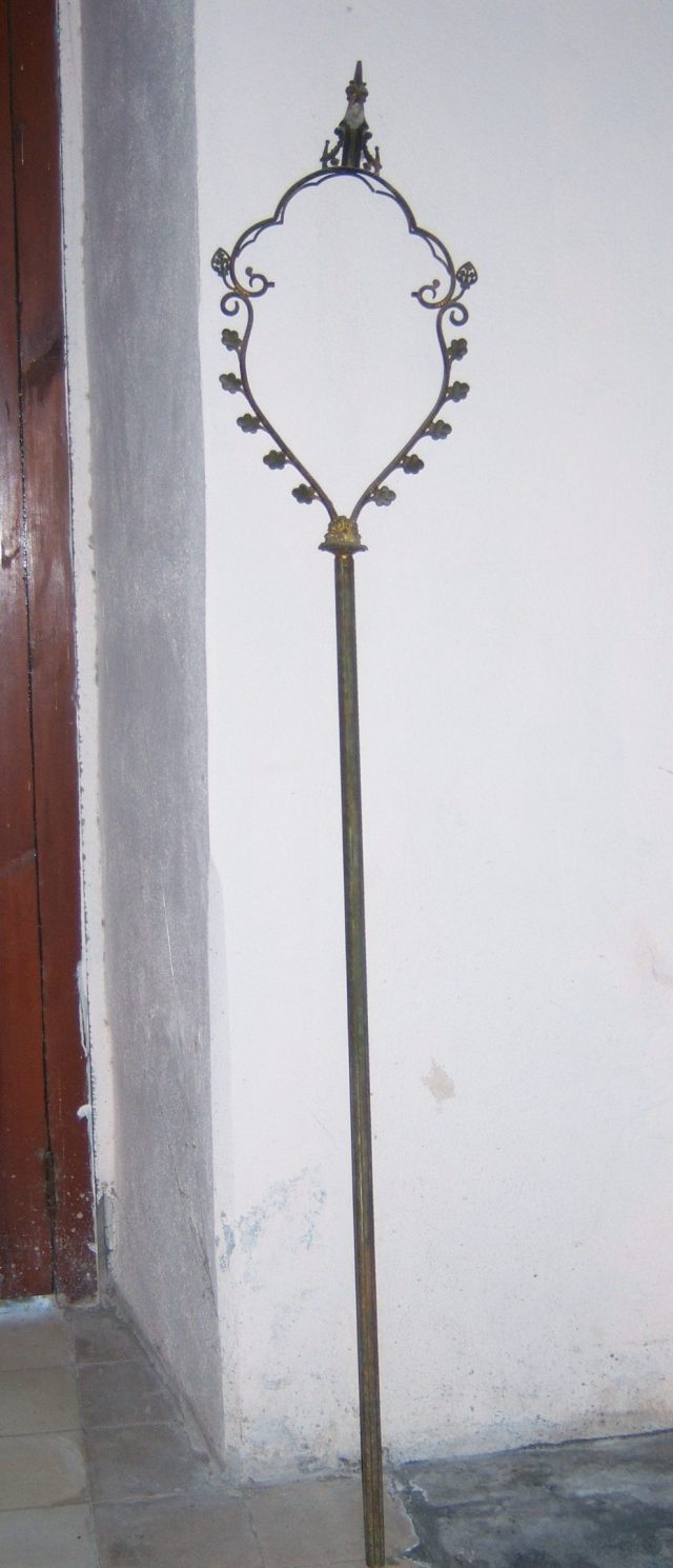 Al revisar todo el patrimonio parroquial hubo en especial una pieza que llamó mucho nuestra atención, revisándola se llegó a la conclusión de que seguramente era una pieza de hace cerca de un siglo, pero ¿qué era? Seguramente era una pieza de uso litúrgico de estilo neogótico, pero ¿para qué se usaba? Pareciera ser algo similar a una cruz alta, pero no lo era, o algo similar a unos ciriales, pero tampoco lo era. En el libro del catálogo parroquial quedó identificada como una pieza de uso incierto. Años después, como suele ocurrir, de casualidad, observé en una publicación una pieza similar. Finalmente supimos que la pieza de García estaba incompleta y que ello dificultaba su identificación, así pudimos saber que era: un tintinábulo.